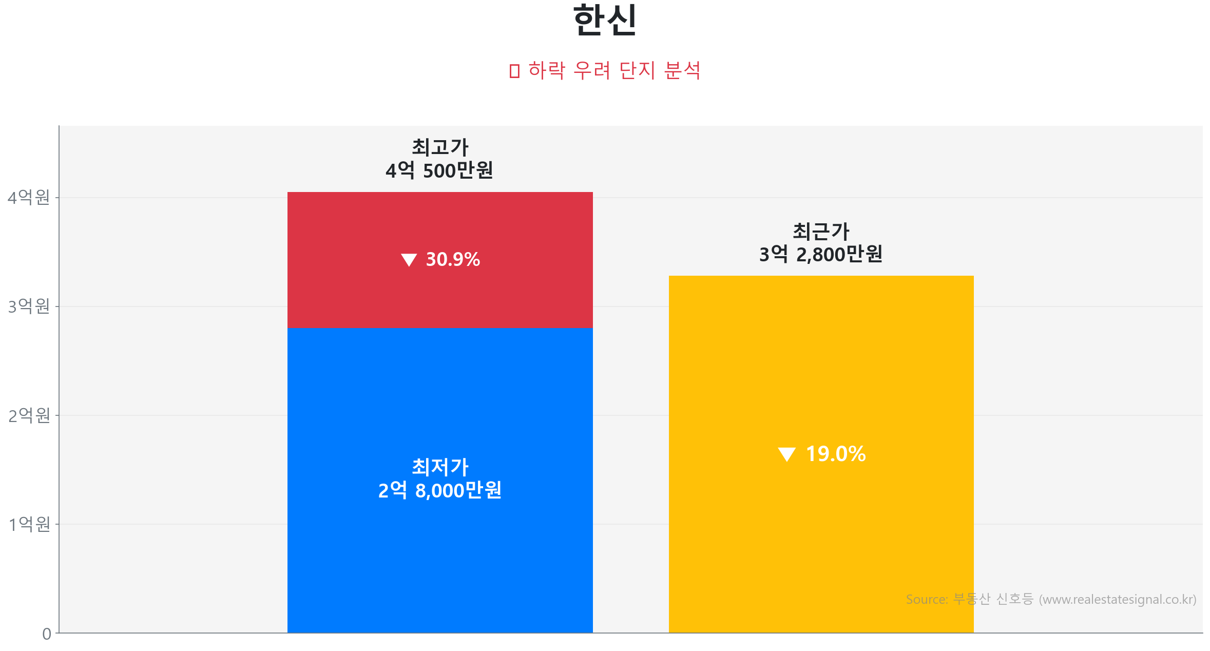 셋. 낙민동 아파트 시세 양극화: 25.0% 반등 단지 vs 41.0% 하락 단지