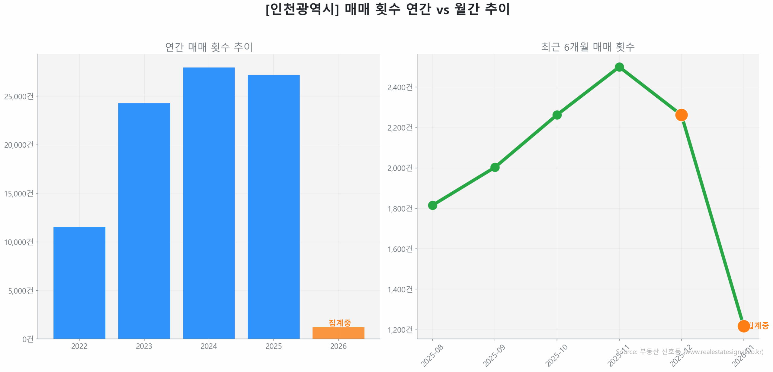인천광역시 연간 매매 거래량 추이 막대 그래프