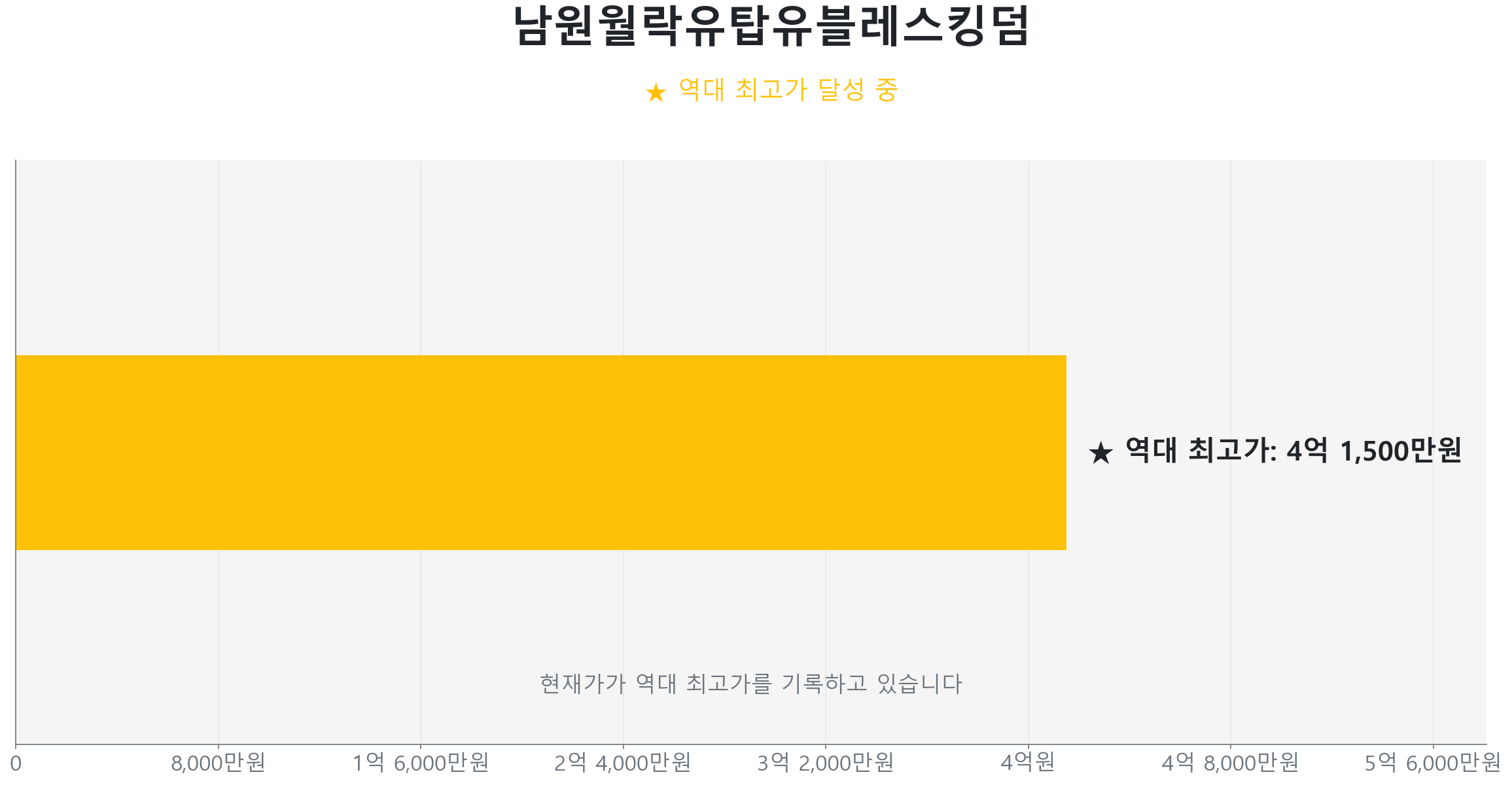 가장 먼저 주목할 곳은 월락동 남원월락유탑유블레스킹덤 (84.0㎡)입니다. 359세대의 아담한 단지이자 준공 1년차 신축 아파트인 이곳은 남원시 내에서도 신축 단지가 시장을 주도하는 흐름을 명확히 보여주고 있습니다. 데이터 분석에 따르면, 이 단지는 시장의 강력한 상승 흐름을 이끌며 신고가를 경신했고, 10건의 활발한 거래량을 통해 실수요의 견고함을 입증했습니다.