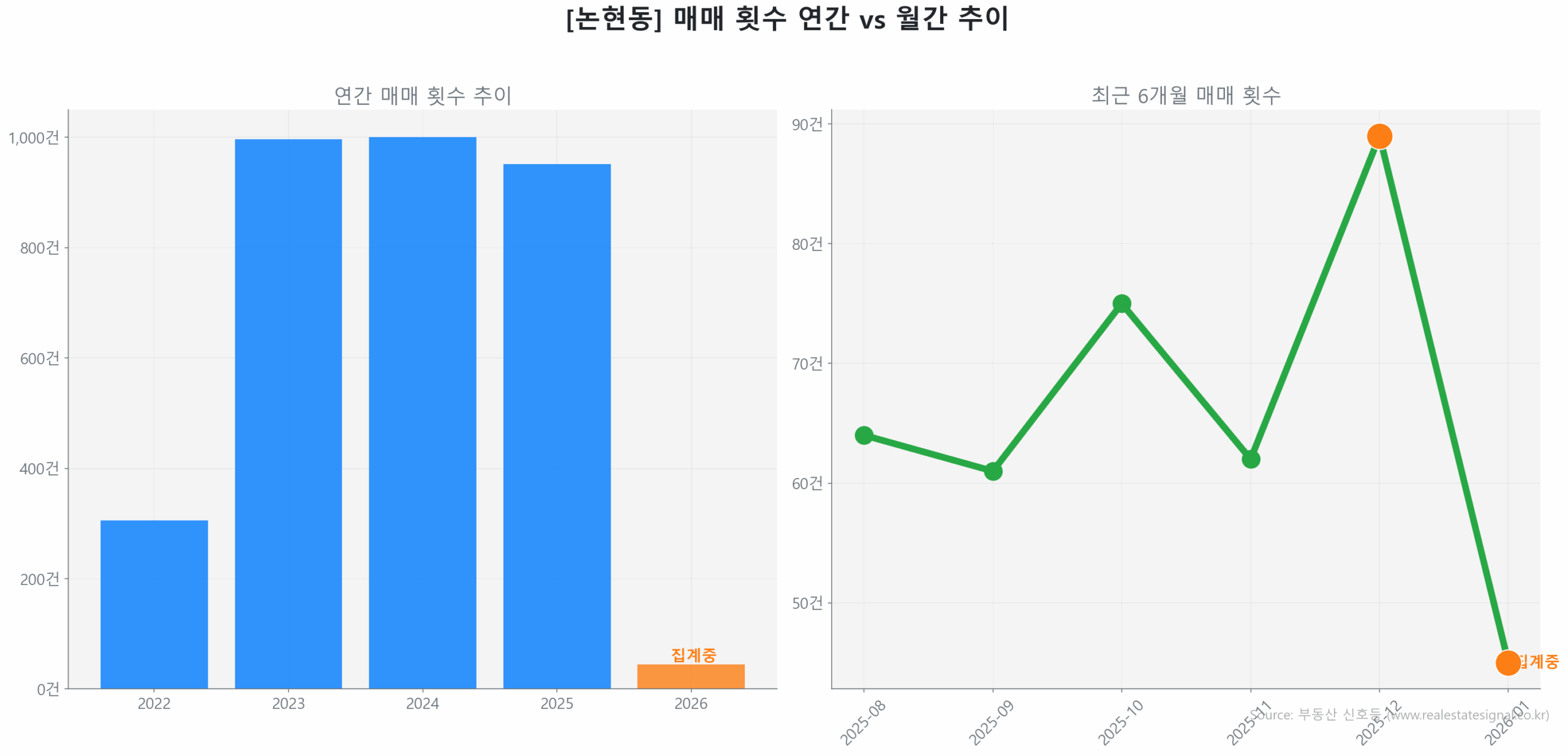 이러한 ‘탄력적’ 시장 에너지는 구축 아파트가 100.0%를 차지하는 ‘구축 아파트 중심의 안정적 시장’ 양상으로 나타나, 인천 논현동 아파트 시장 전반보다는 특정 세그먼트에 편중된 선별적 회복세를 보입니다.