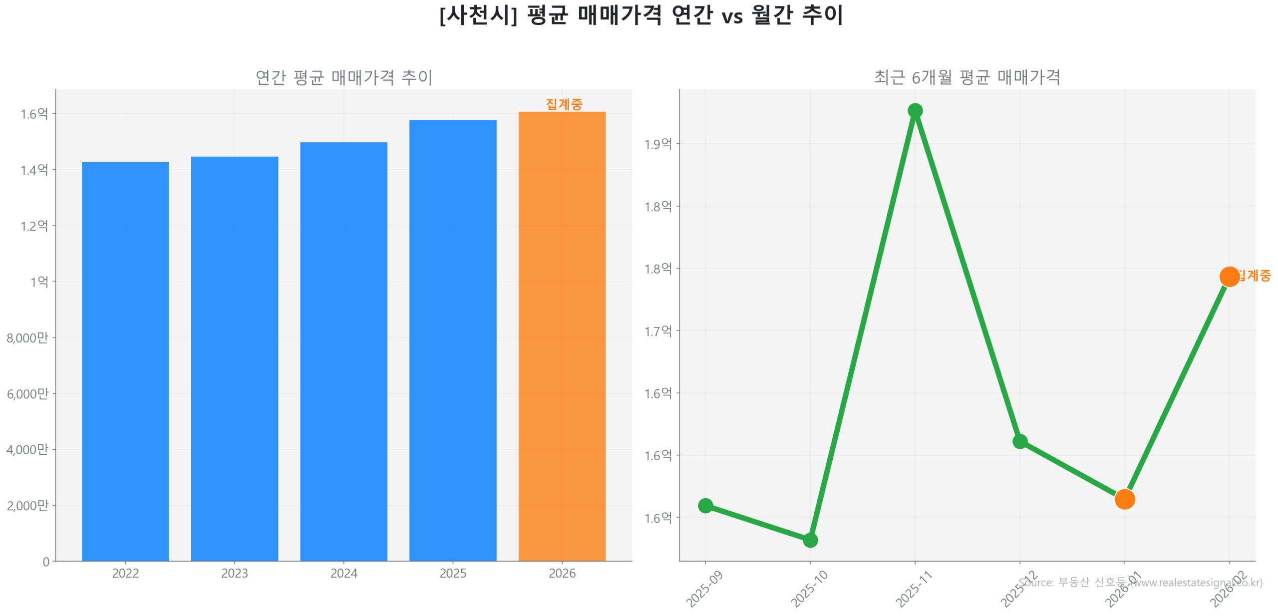 사천시는 신축 대단지의 강력한 반등과 노후 구축의 깊은 조정이라는 시장의 뚜렷한 양극화 현실이 나타나고 있습니다.
