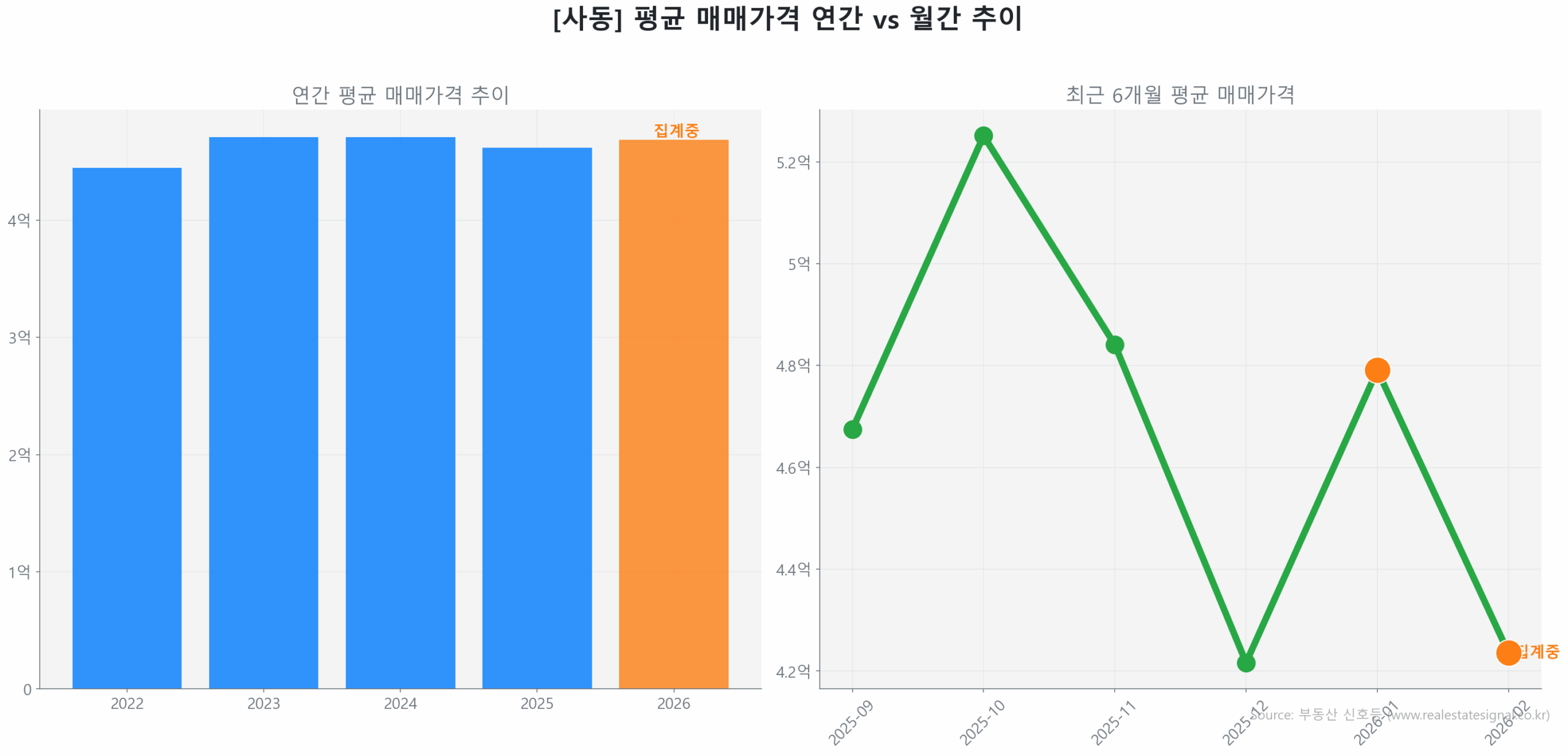 결국 사동은 압도적 커뮤니티를 앞세운 신축의 화려함과, 역세권 입지 가치를 기반으로 프라이버시와 정숙성을 확보한 구축의 실속이 맞붙으며 향후 인프라 완성 시점을 향해 치열하게 각자의 지지선을 구축하는 모습입니다.