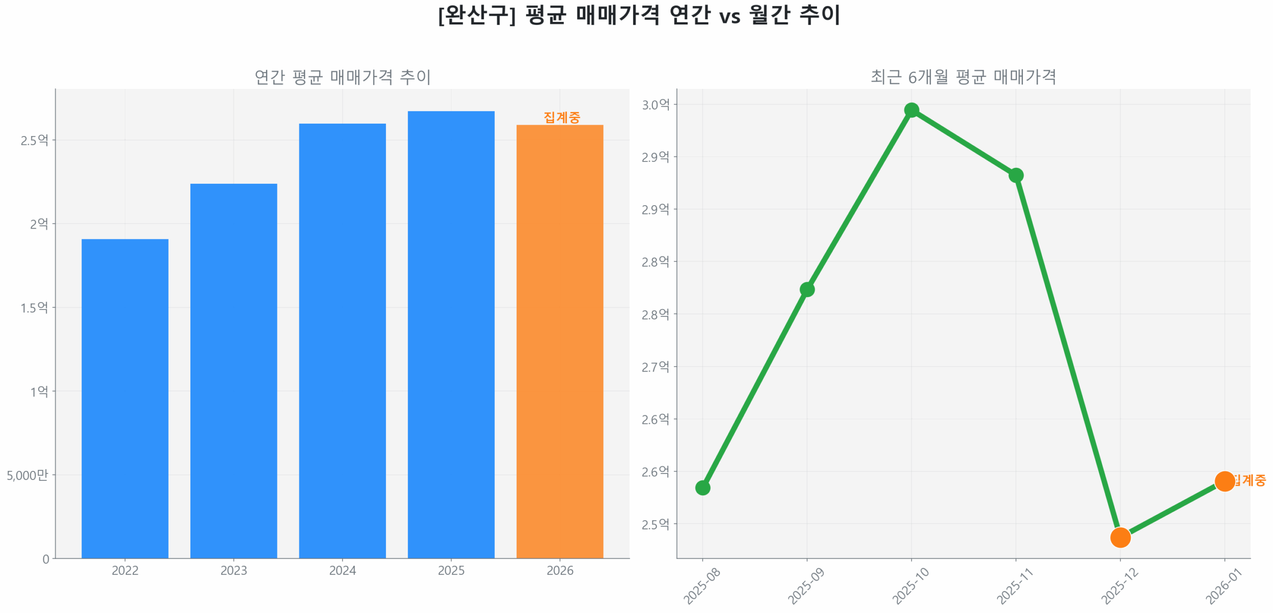 전주 삼천동 부동산 시장은 2025년 12월 9일 확정치 기준, 역사적 저점 대비 55.0% 반등하며 회복 국면에 진입했으며, 전년 동기 대비 매수 가속도가 8.75%를 기록하며 시장 에너지가 응집되는 양상을 보입니다. 다만, 2025년 3월 최고점(2억 4,064만 원)과 비교하면 아직 회복 여력이 남아있는 선별적 회복 초기 국면으로 진단됩니다.