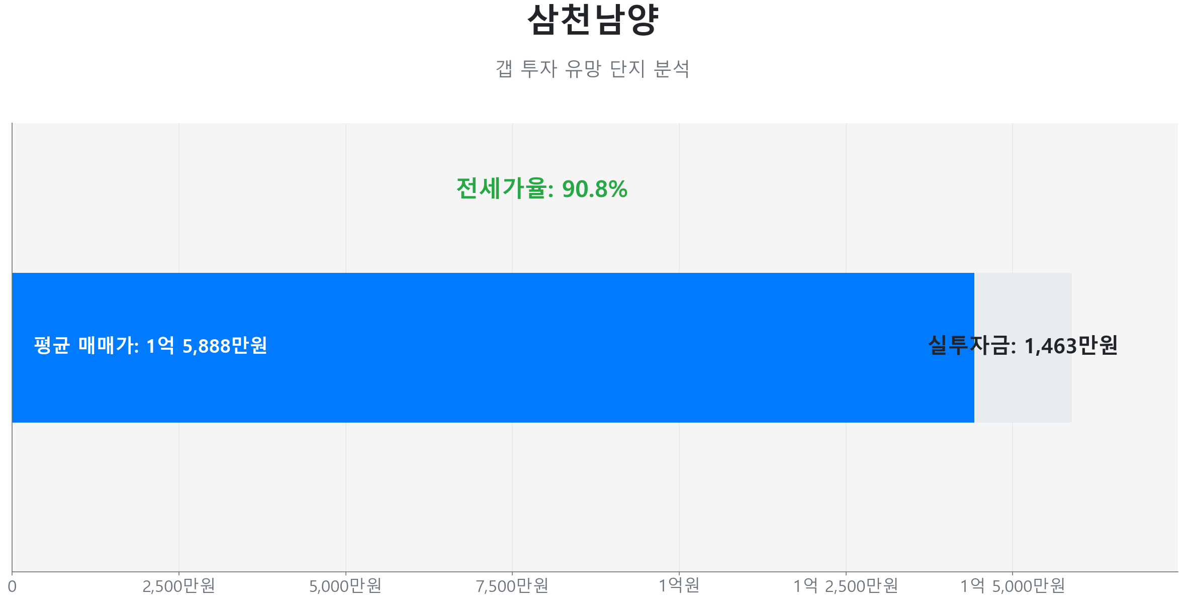 이어서 삼천동1가 삼천남양 (59.0㎡ 타입), 1998년 준공 단지는 전세가율 90.79%를 기록하며 약 1,463만 원의 소액 투자가 가능하며, 전주교도소 이전 사업의 잠재적 수혜를 기대할 수 있습니다.