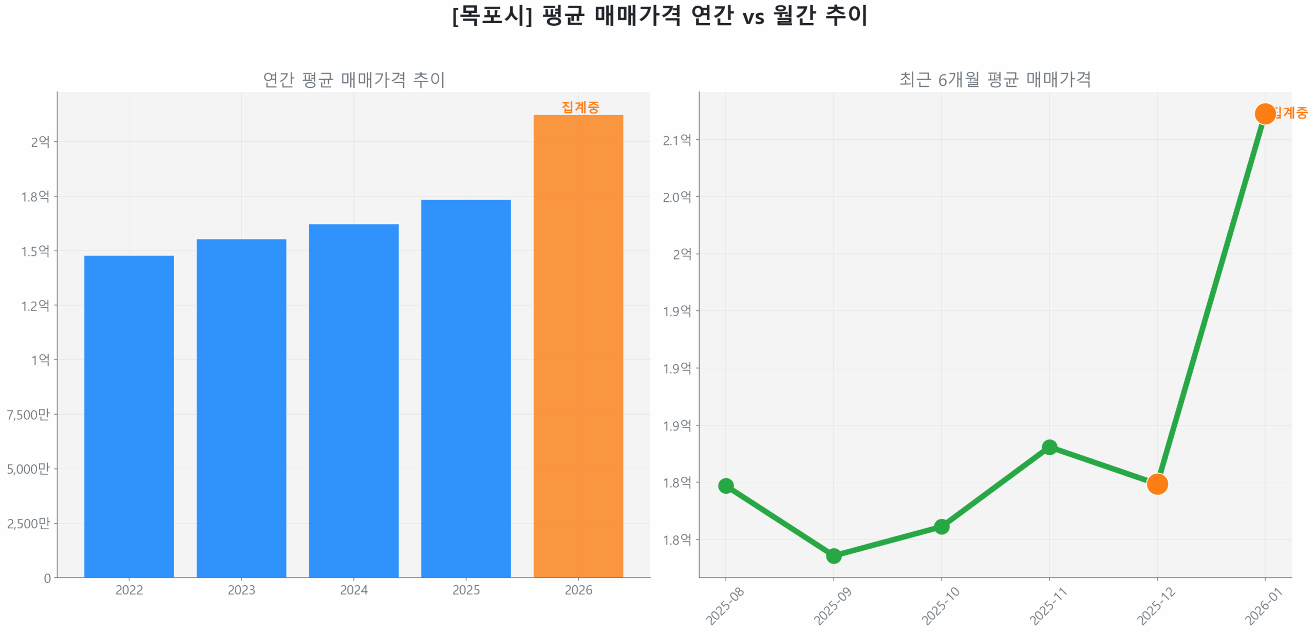 목포시 연간 평균 매매가 추이 막대 그래프