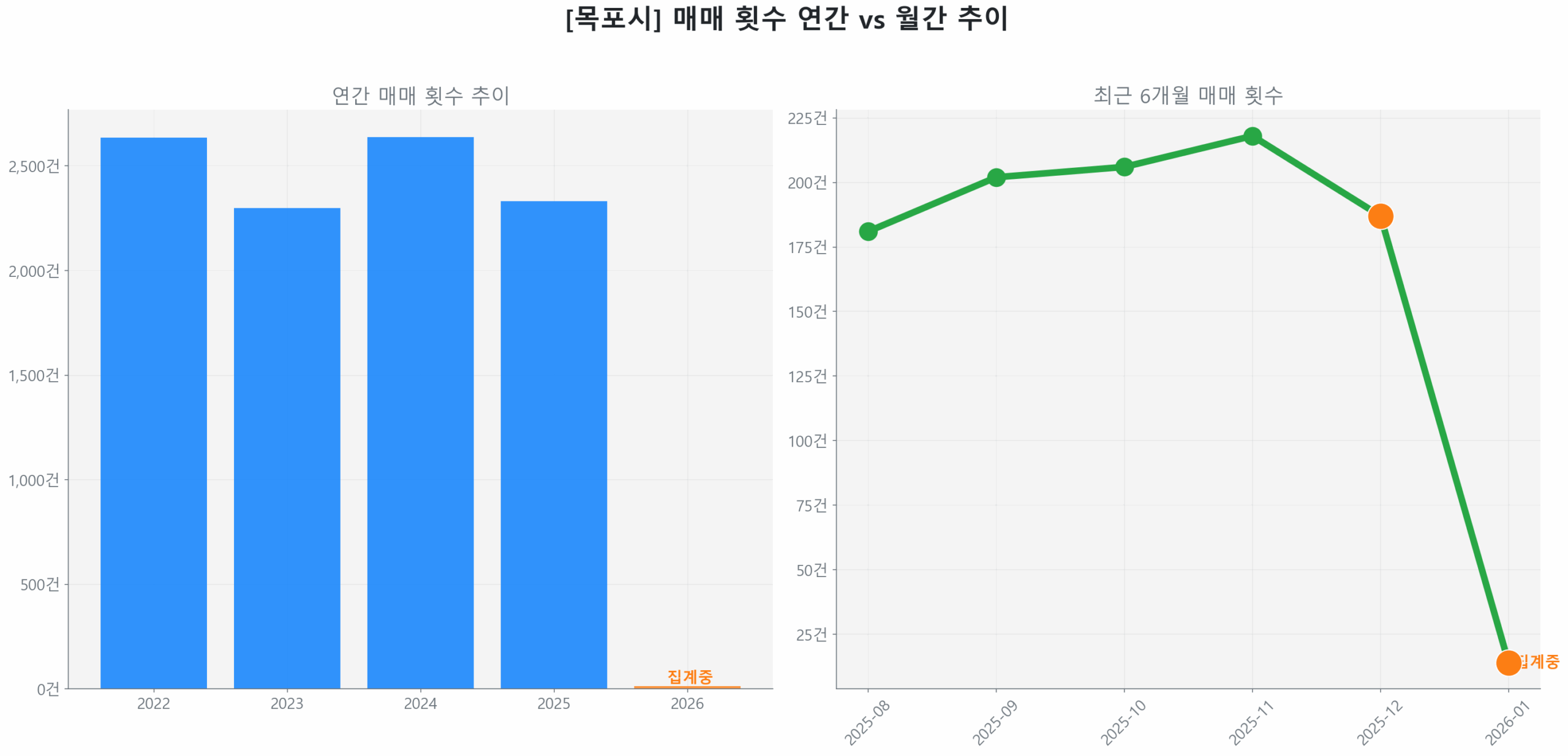 목포시 연간 매매 거래량 추이 막대 그래프