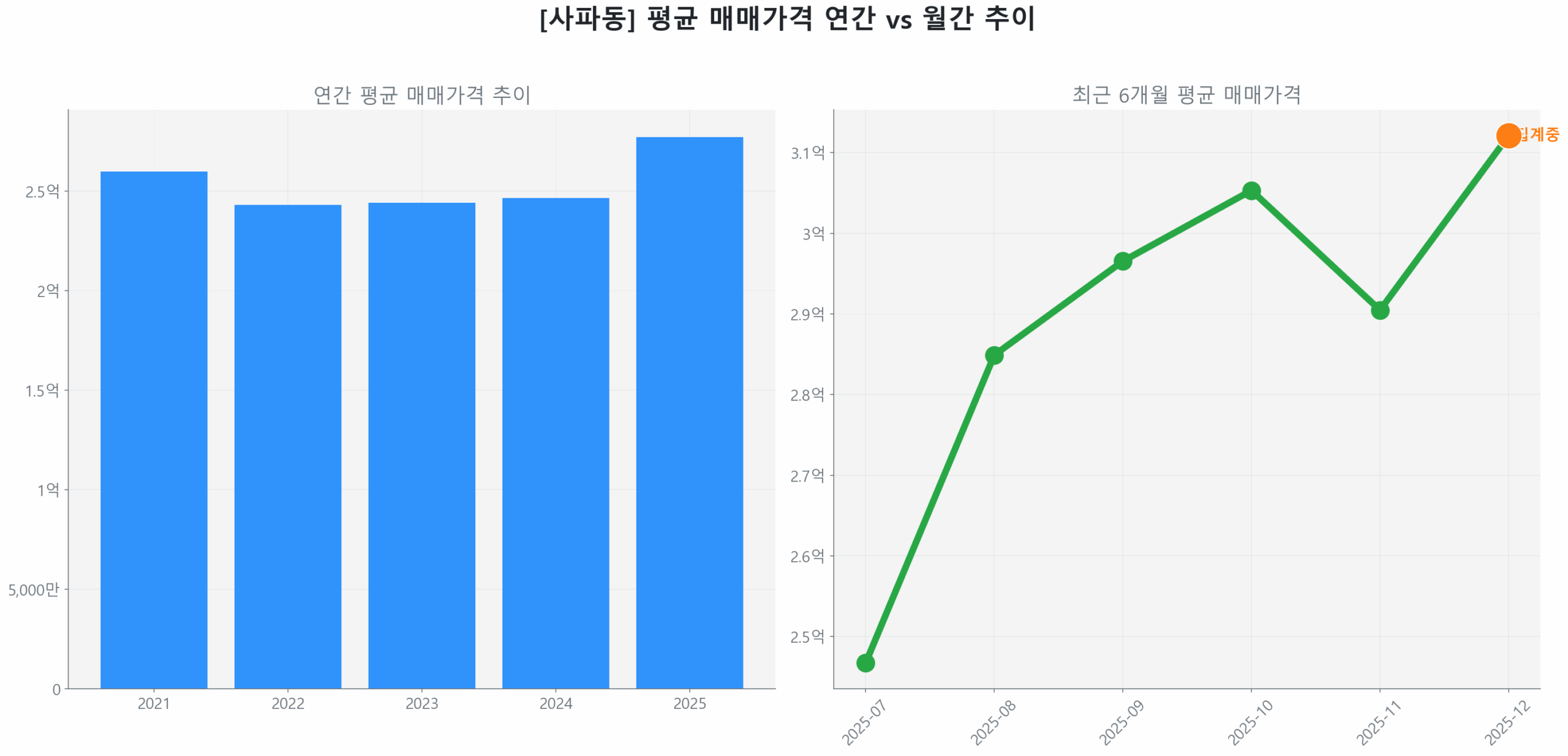 셋째 (회복 강도): 전고점(3억 1,500만) 대비 회복률은 85.6%입니다. 완만한 회복세를 보이고 있습니다.