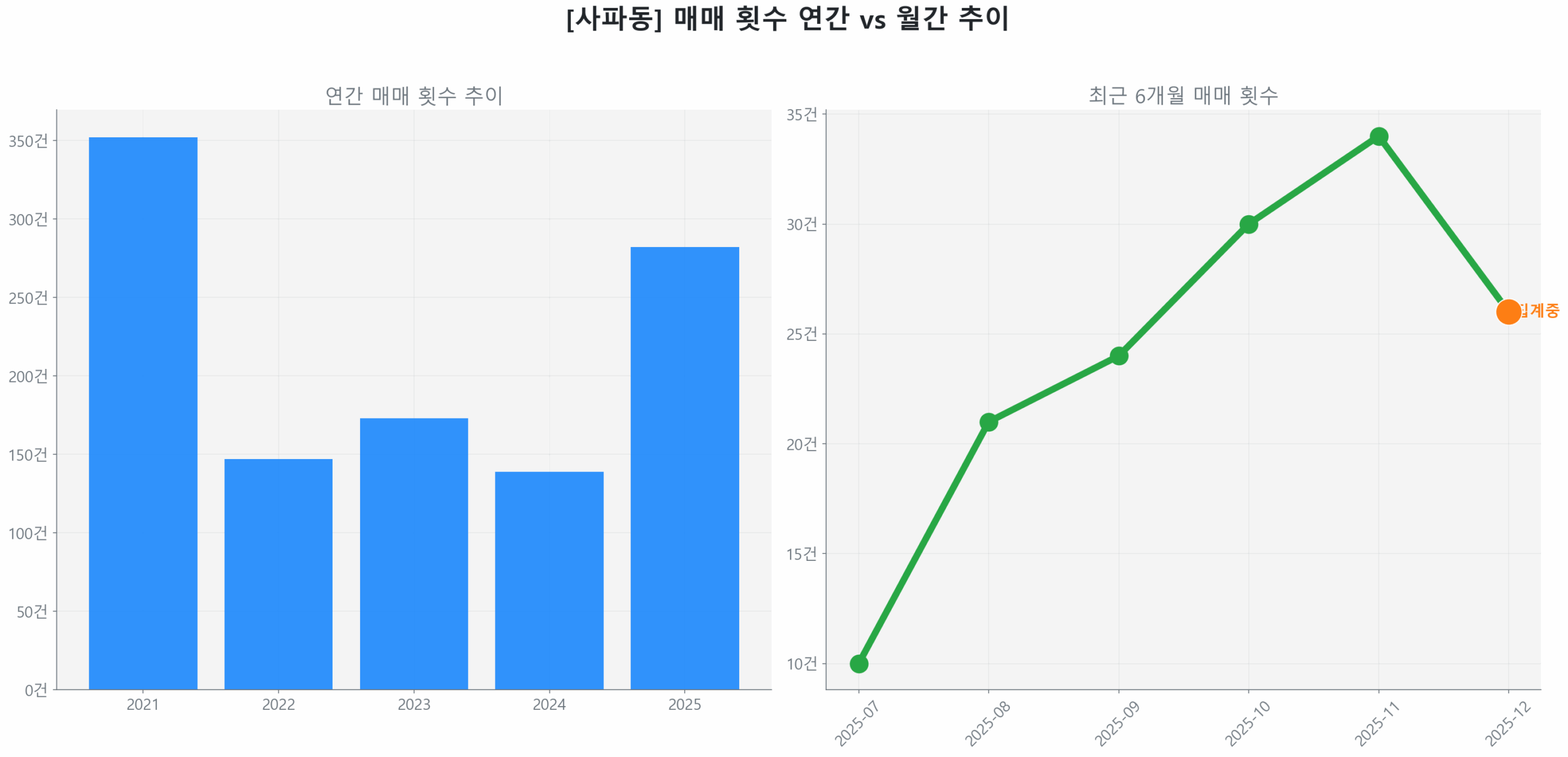 이는 인근 규제 지역으로부터의 자본 유입 및 비규제 이점을 활용하려는 투자 수요가 시장을 움직이는 주요 동력임을 시사하며, 사파동 시장이 ‘선별적 회복 초기 국면’에 진입했음을 증명합니다.