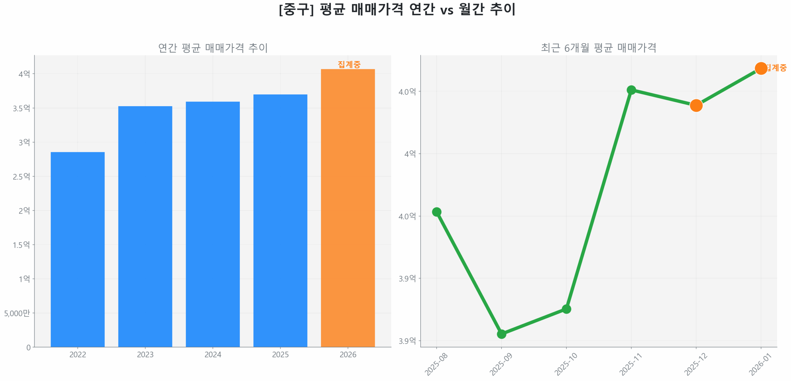 한편, 태화동 우정혁신엘에이치2단지 (59.0㎡ 타입), 536세대의 준공 12년차 구축 단지 역시 시장을 주도하는 상승 흐름을 보이며, 매매가가 전년 대비 7.8% 상승했고, 42건의 거래량을 기록하며 2026년 1월 3억 7,500만 원에 거래되었습니다.