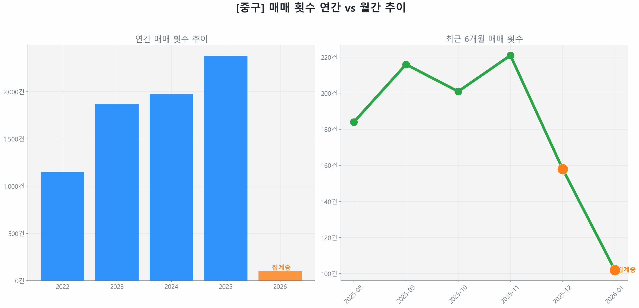 중구 월간 매매 거래량 추이 꺾은선 그래프