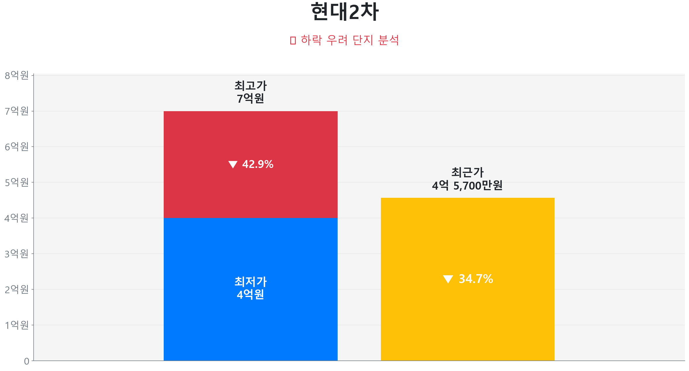 실제로 최근 2025년 12월에 15층 매물이 4억 5,700만 원에 거래되었습니다. 이는 2021년 6월에 기록된 역사적 고점 7억 원(16층) 대비 34.71% 하락한 수준입니다. 참고로 2025년 7월에는 4억 원(7층)까지 하락하며 바닥을 찍었으나, 최근 거래가는 당시 대비 14.25% 반등한 모습입니다. 이 단지는 고점 대비 큰 폭의 조정을 겪었지만, 탄탄한 전세가율과 반등세를 통해 가격 메리트가 부각되며 장기적인 관점에서 매수 기회를 제공하고 있습니다.
