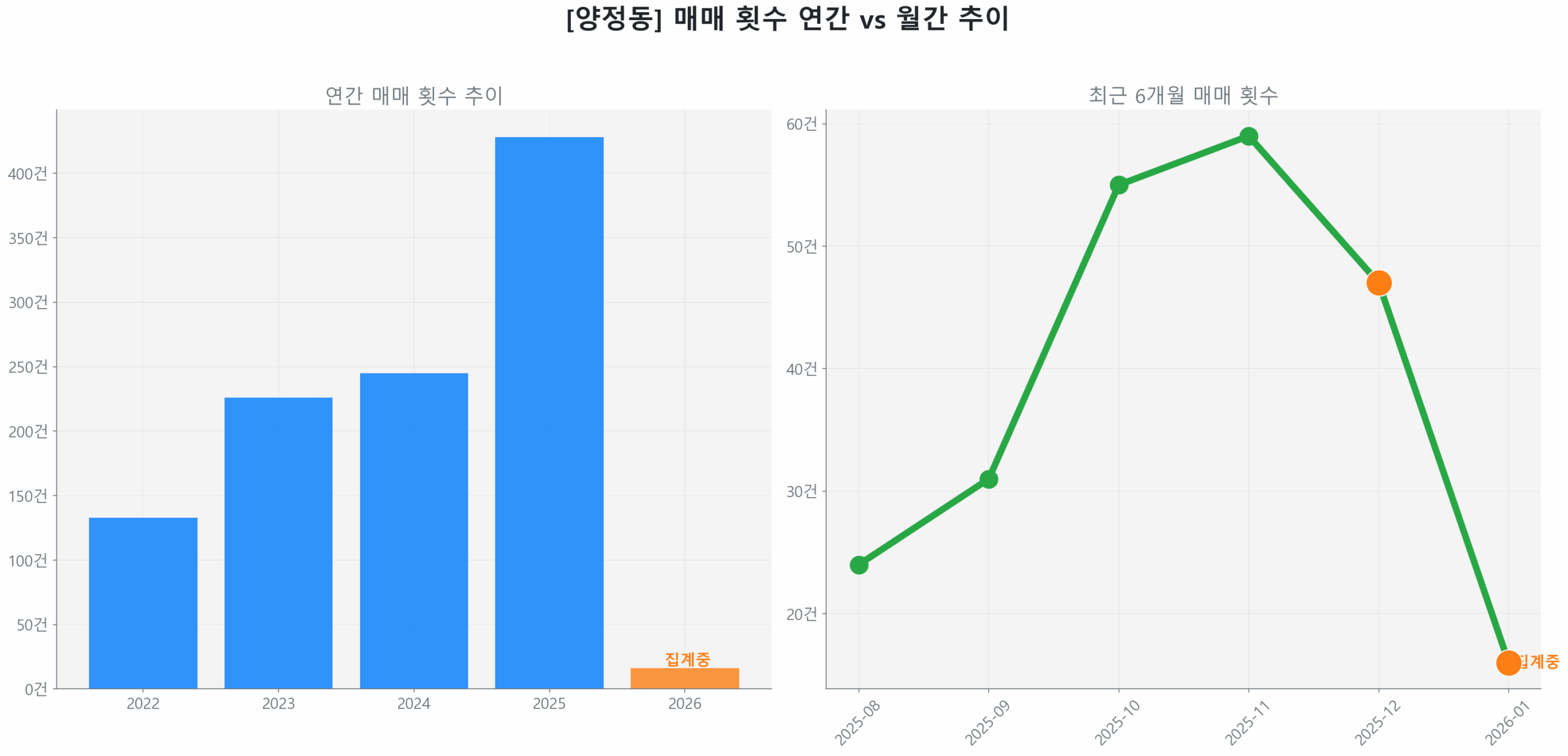 비규제 지역으로서 양정동은 정책 제약이 적어 다양한 자본 유입이 가능하며, 이는 단기적인 거래 에너지 상승으로 이어지고 있습니다. 이러한 유연한 시장 환경은 실수요와 투자 수요가 공존하며 탄력적으로 반응하는 독특한 시장 구조를 형성하고 있습니다.