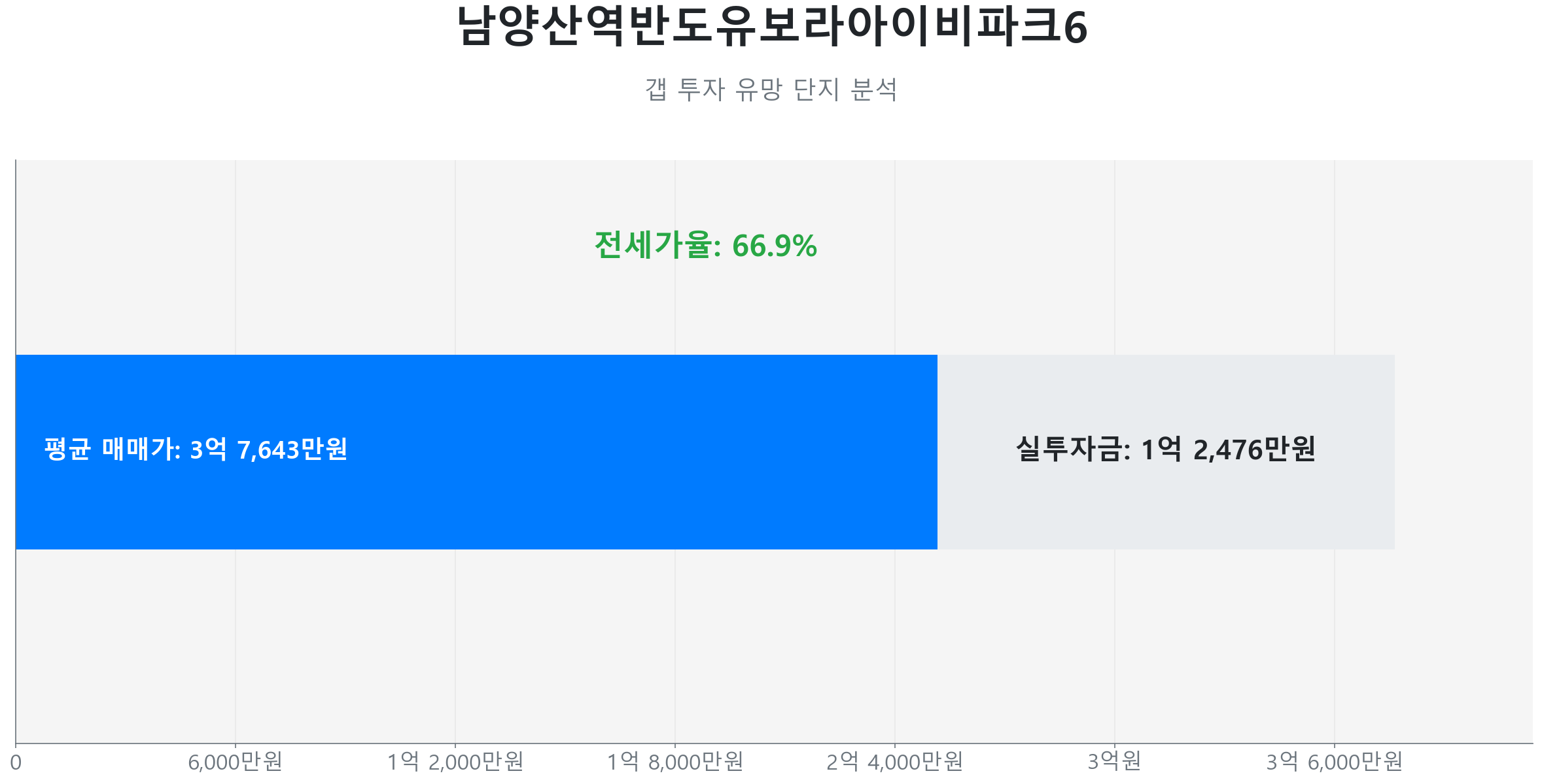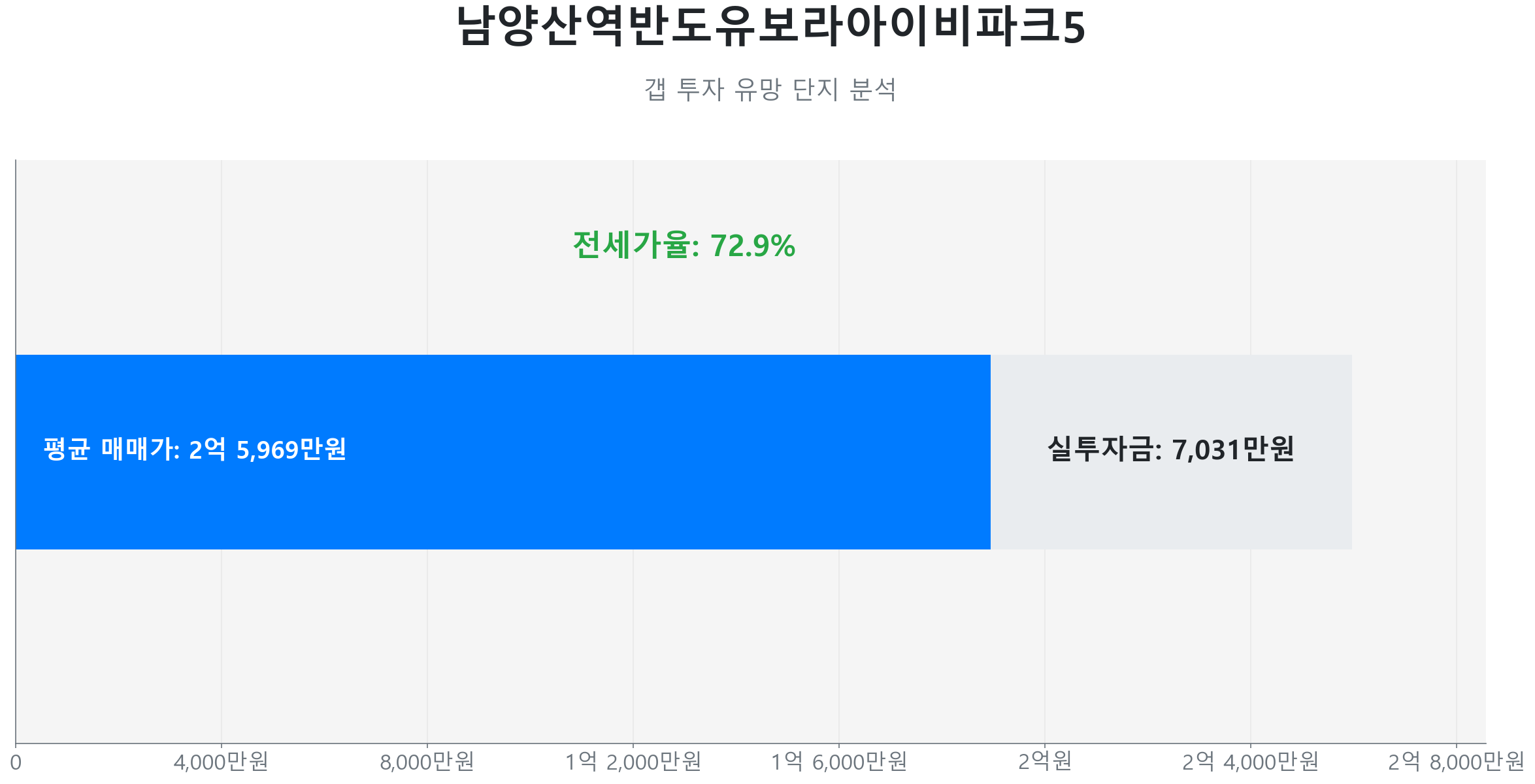 현재 비규제 지역으로 분류되어 소액 갭투자가 가능합니다. 남양산역반도유보라아이비파크5의 경우 전세가율 72.9%를 유지하고 있어, 실투자금 약 7,031만 원의 소액으로도 접근할 수 있는 가성비 단지로 분석됩니다.