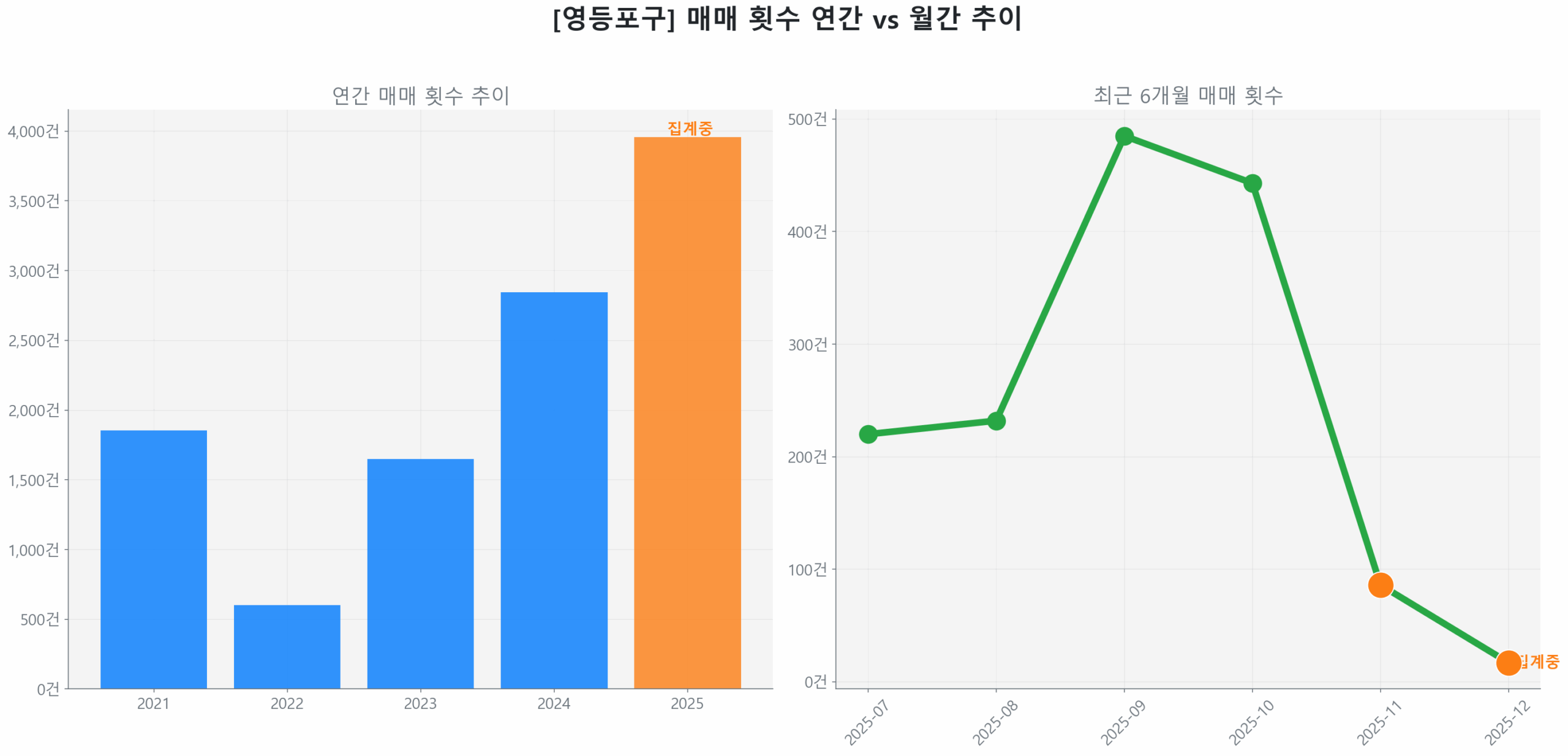 2025년 12월, 서울 부동산 시장에서 가장 극적인 변화를 겪고 있는 곳은 바로 영등포구입니다. 현재 단순한 거래 감소가 아닌, 시장의 호흡이 강제적으로 멈춘 심정지 상태가 목격됩니다. 데이터는 이 충격적인 진단을 명확히 증명합니다.