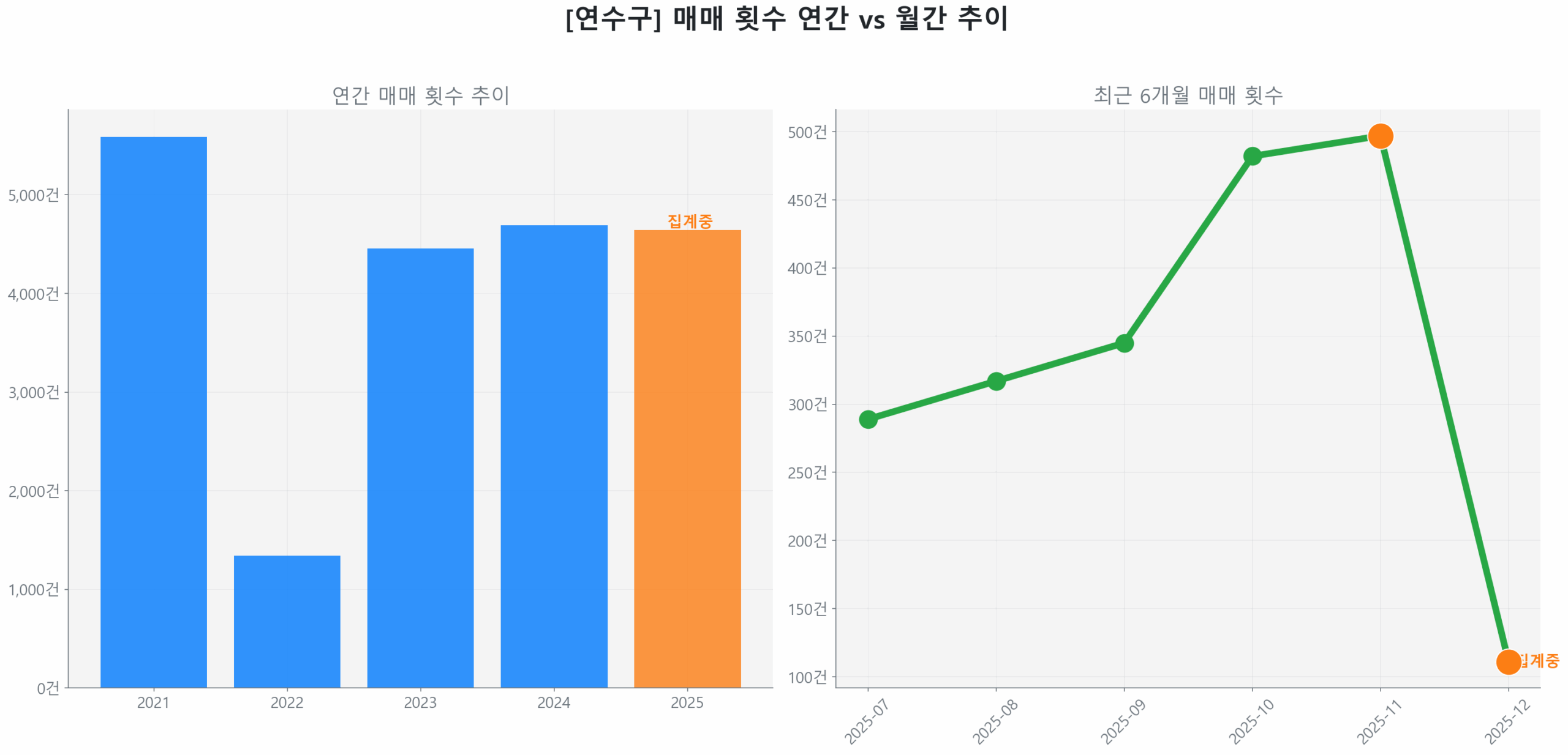 가. 연수구 시장 진단: 거래량 54.3% 급증과 회복 국면 안착