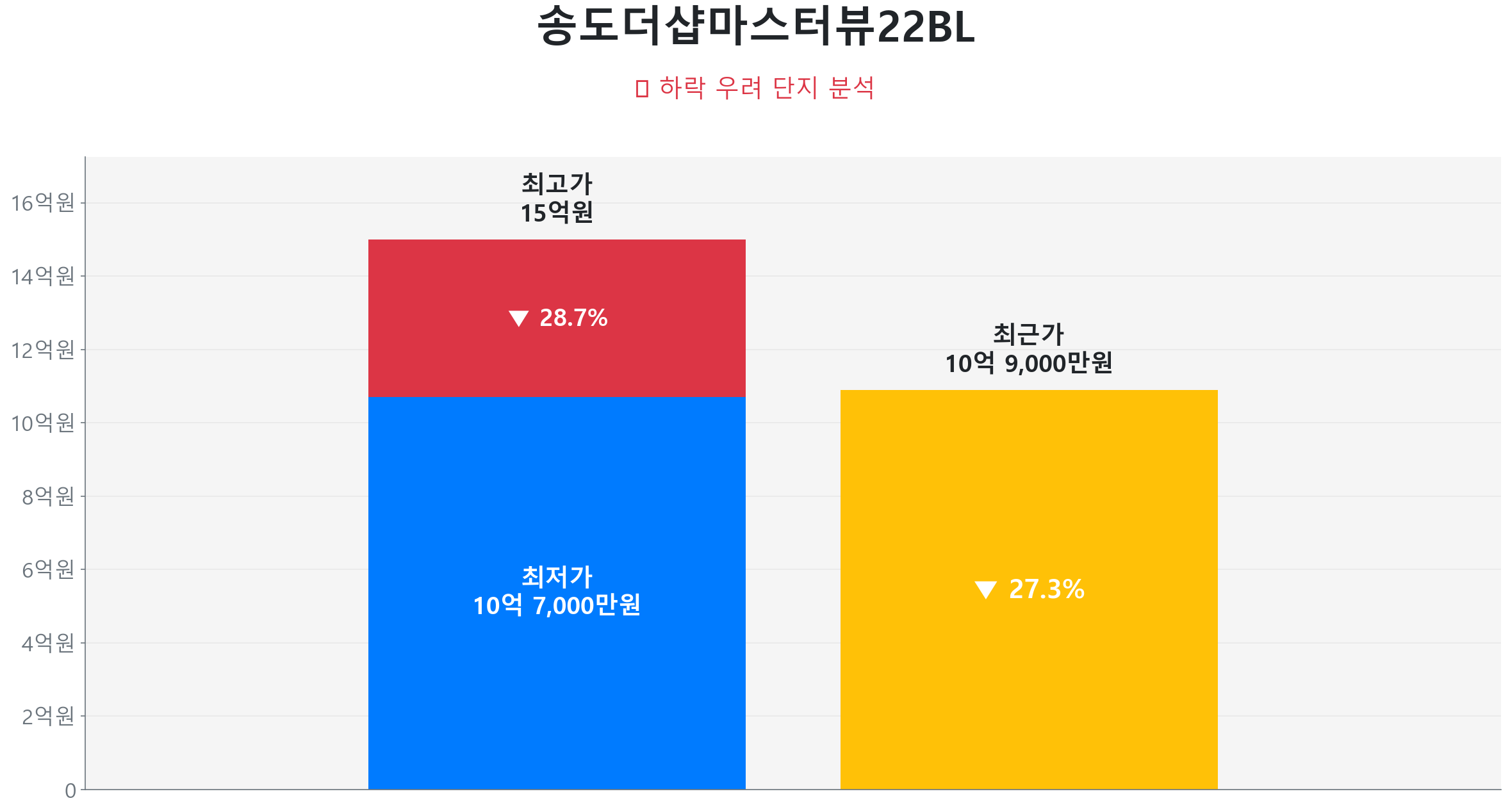 조정 국면을 지나고 있는 송도더샵마스터뷰22BL (125.5㎡)은 2025년 5월 8층 매물이 10억 9,000만 원에 거래되었는데, 이는 고점 대비 약 27.3% 하락한 수준입니다.