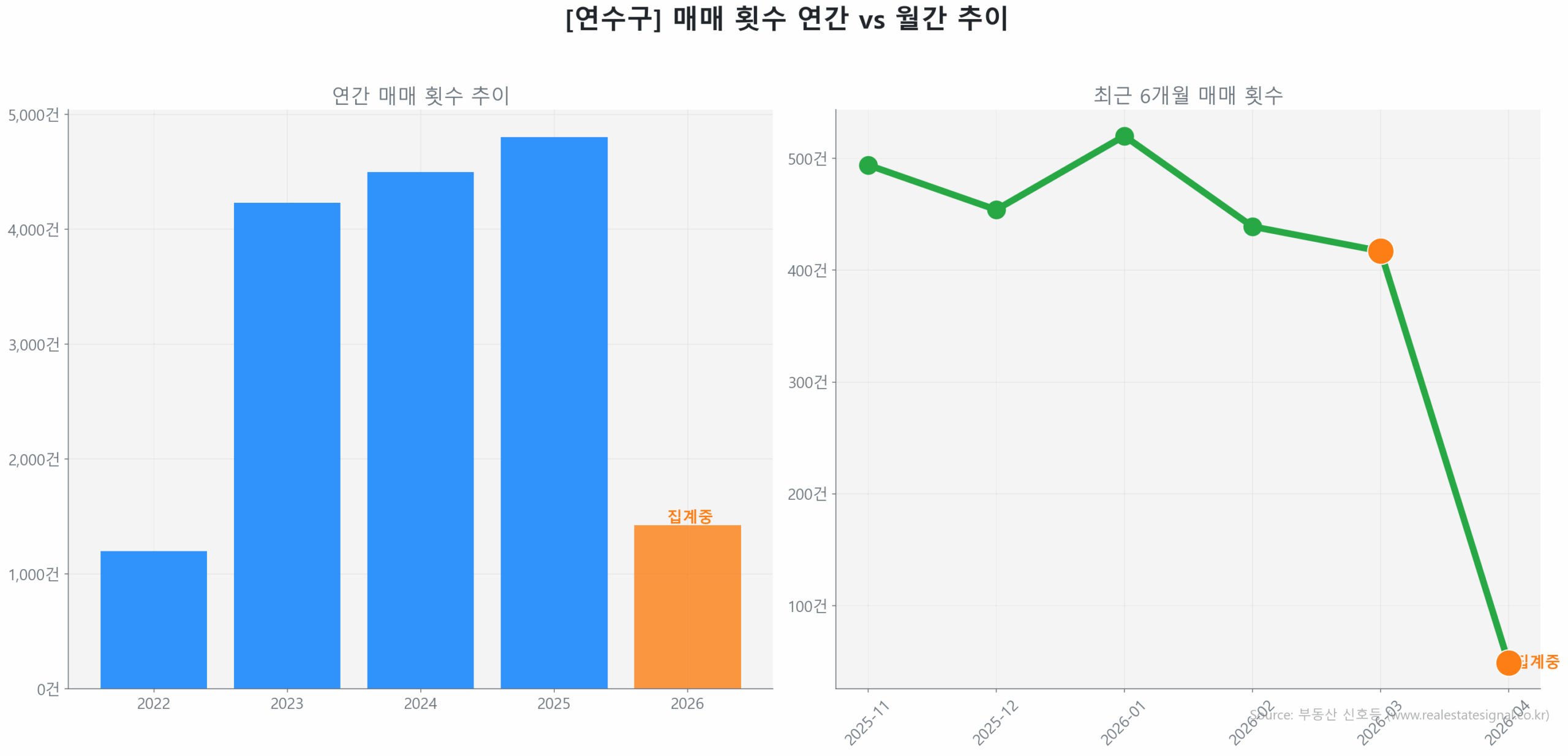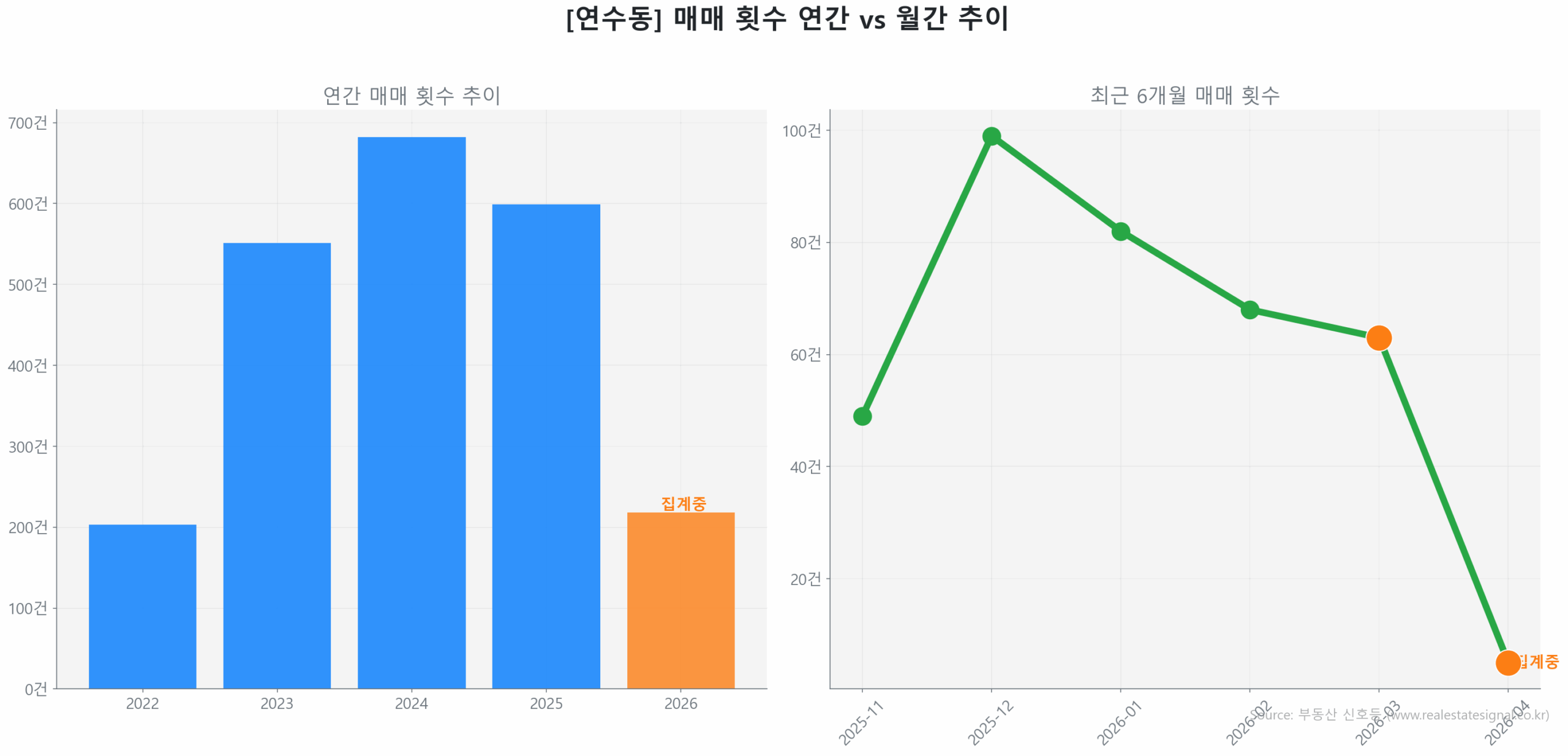 최근 연수동 아파트 거래량과 시장 분위기는 어떻게 변하고 있나요?